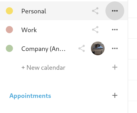 + New Calendarin the left sidebar.Type in a name for your new calendar, e.g. “Work”, “Home” or “Marketing planning”.
