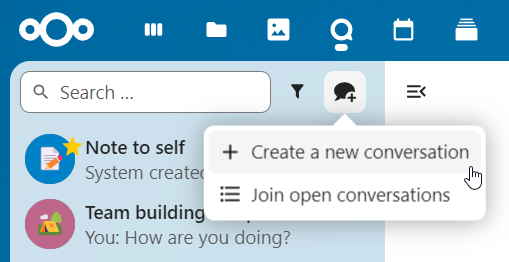 2. Group conversations. Besides the person who created the conversation, a group conversation can have any number of people in it. A group conversation can be shared publicly with a link, so external guest users can join a call. It can also be listed, so other people on your Nextcloud server can join the conversation.